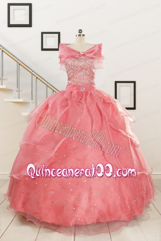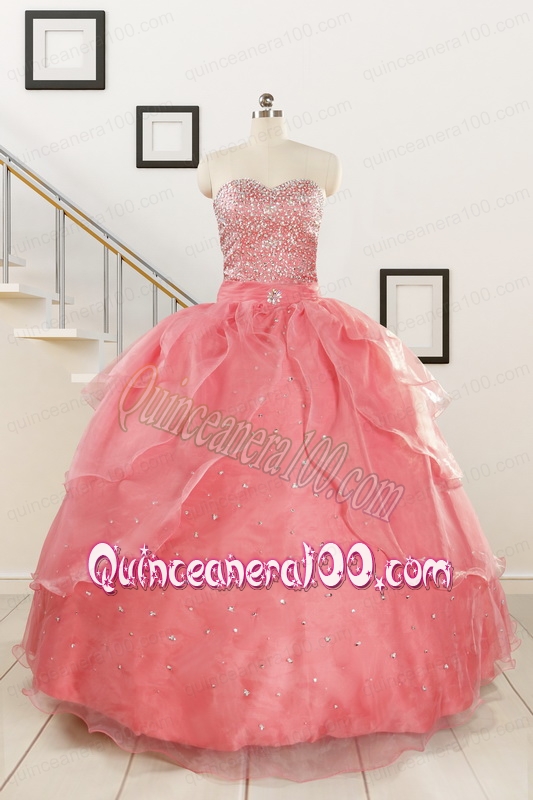Neckline : SweetheartShown Color : Watermelon RedSilhouette : Ball GownsSleeve Length : sleevelessHemline : floor lengthBack Detail : Lace upFabric : OrganzaEmbellishment : BeadingOccasion : Prom,Military Ball,Sweet 16Season : Spring,Summer,Fall