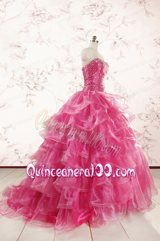 Neckline : SweetheartShown Color : Hot PinkSilhouette : Ball GownsSleeve Length : sleevelessHemline : floor lengthBack Detail : Lace upFabric : OrganzaEmbellishment : Beading,RufflesOccasion : Prom,Military Ball,Sweet 16Season : Spring,Summer,Fall