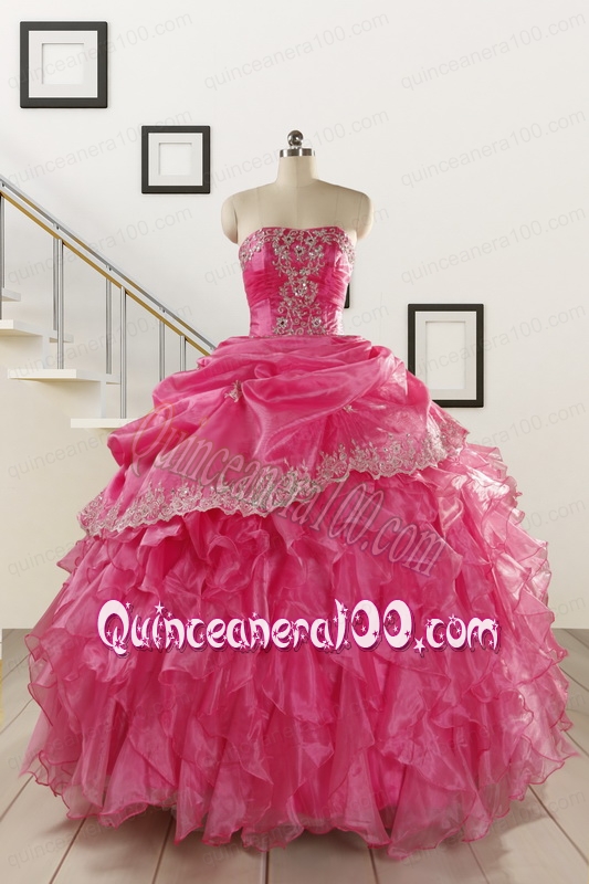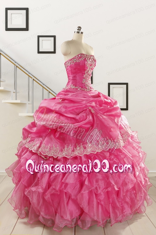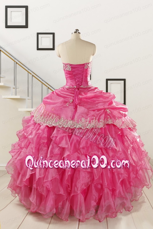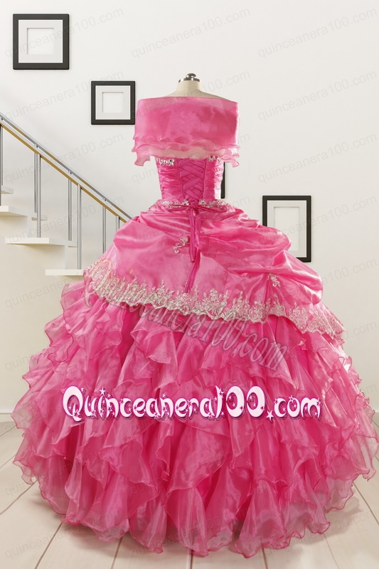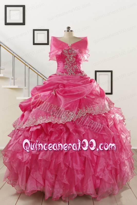 2015 Pretty Appliques and Ruffles Quinceanera Gowns in Hot Pink