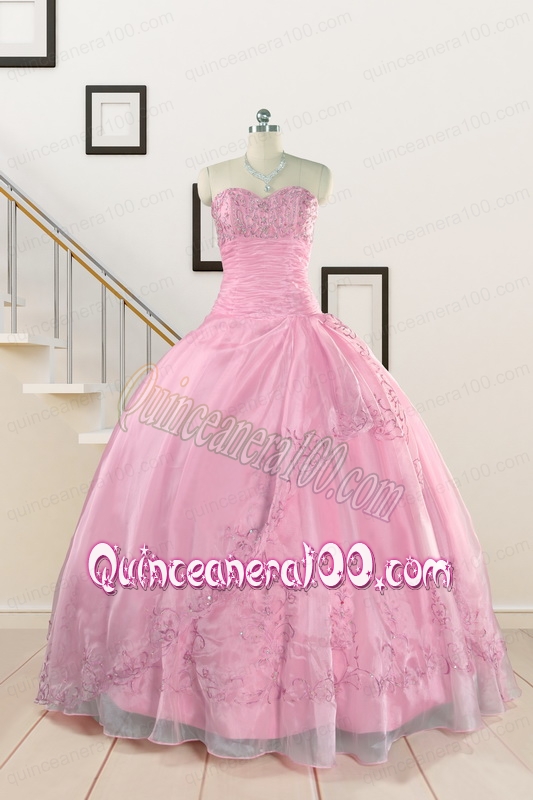 Neckline : SweetheartShown Color : Baby PinkSilhouette : Ball GownsSleeve Length : sleevelessHemline : floor lengthBack Detail : Lace upFabric : OrganzaEmbellishment : Beading,AppliquesOccasion : Prom,Military Ball,QuinceaneraSeason : Spring,Summer,Fall