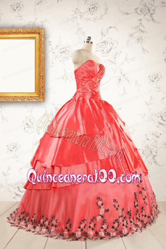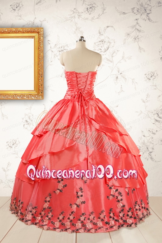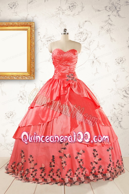 Neckline : SweetheartShown Color : Watermelon RedSilhouette : Ball GownsSleeve Length : sleevelessHemline : floor lengthBack Detail : Lace upFabric : TaffetaEmbellishment : Appliques,RuchingOccasion : Prom,Military BallSeason : Spring,Summer,Fall
