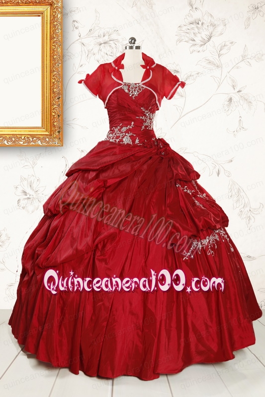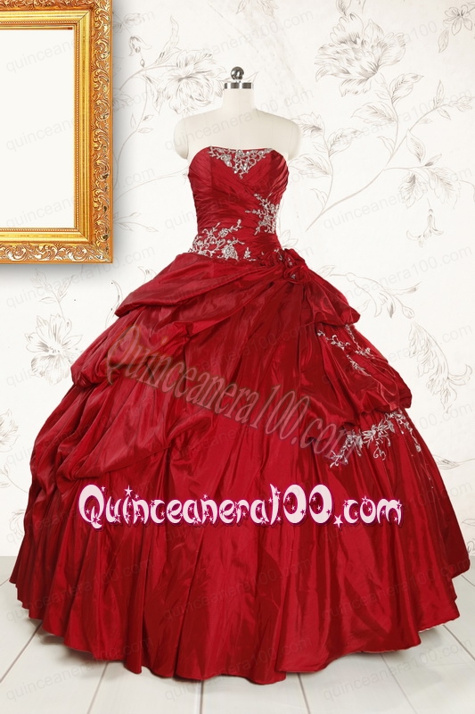 Neckline : SweetheartShown Color : Wine RedSilhouette : Ball GownsSleeve Length : sleevelessHemline : floor lengthBack Detail : Lace upFabric : TaffetaEmbellishment : AppliquesOccasion : Prom,Military Ball,Sweet 16Season : Spring,Summer,Fall