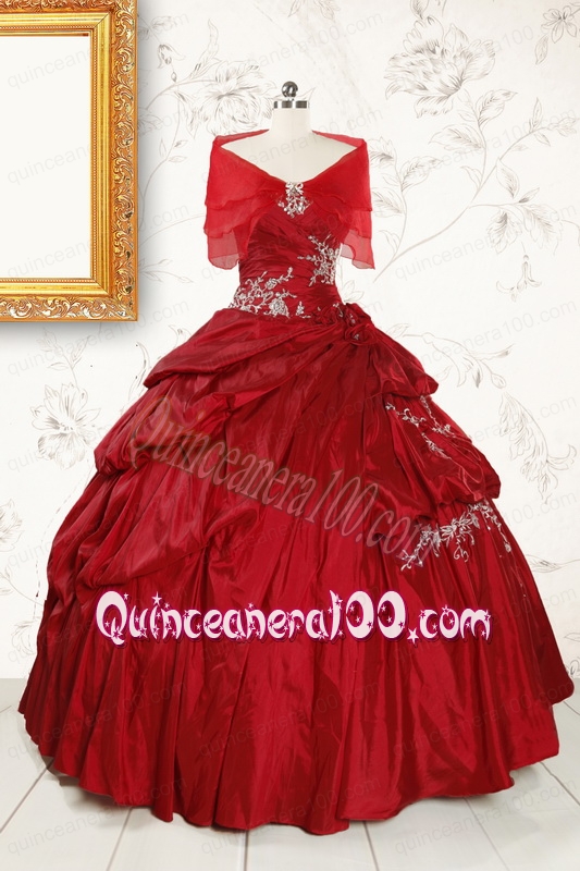 Neckline : SweetheartShown Color : Wine RedSilhouette : Ball GownsSleeve Length : sleevelessHemline : floor lengthBack Detail : Lace upFabric : TaffetaEmbellishment : Appliques,Pick UpsOccasion : Prom,Military BallSeason : Spring,Summer,Fall