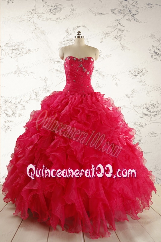 Neckline : SweetheartShown Color : RedSilhouette : Ball GownsSleeve Length : sleevelessHemline : floor lengthBack Detail : Lace upFabric : OrganzaEmbellishment : Beading,RufflesOccasion : Prom,Military Ball,Sweet 16Season : Spring,Summer,Fall