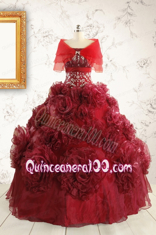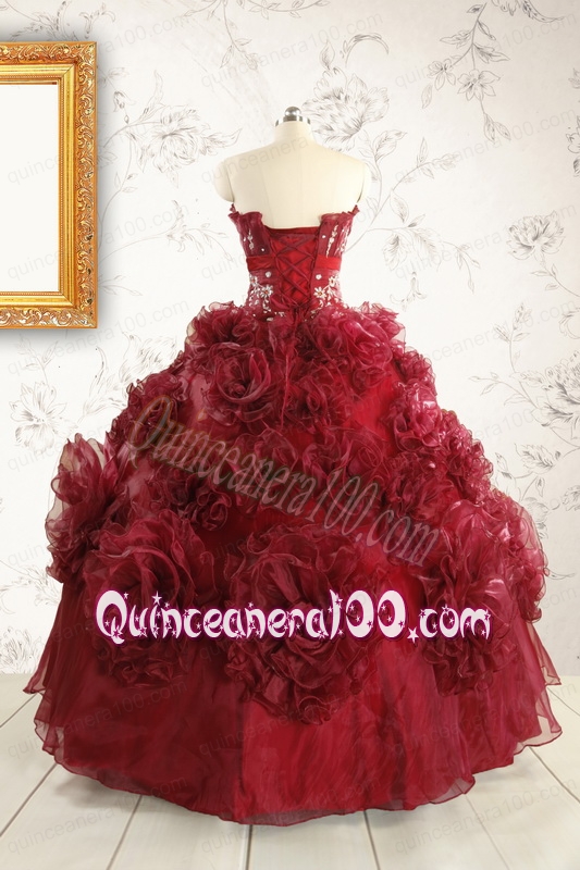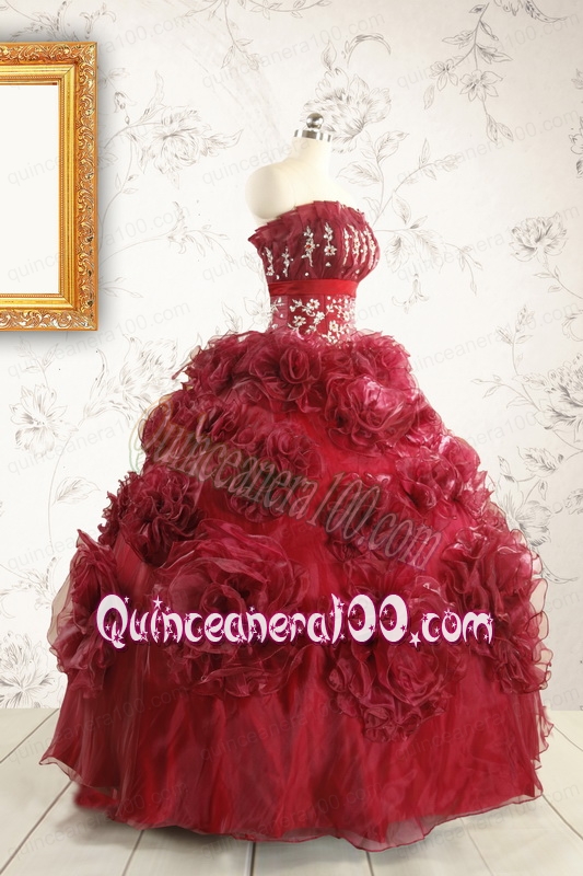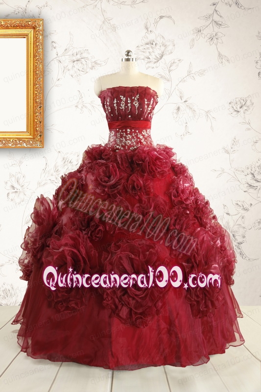 Neckline : StraplessShown Color : Wine RedSilhouette : Ball GownsSleeve Length : sleevelessHemline : floor lengthBack Detail : Lace upFabric : OrganzaEmbellishment : Beading,Hand Made FlowerOccasion : Prom,Military BallSeason : Spring,Summer,Fall