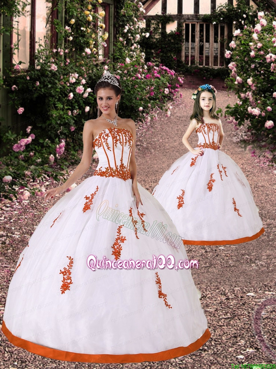 2015 Trendy Appliques Princesita Dress in White and Orange Red