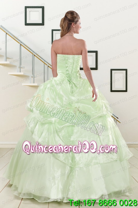 Neckline : StraplessShown Color : Yellow GreenSilhouette : Ball GownsSleeve Length : sleevelessHemline : floor lengthBack Detail : Lace upFabric : OrganzaEmbellishment : Beading,RufflesOccasion : Military Ball,Sweet 16,QuinceaneraSeason : Spring,Summer,Fall,Winter