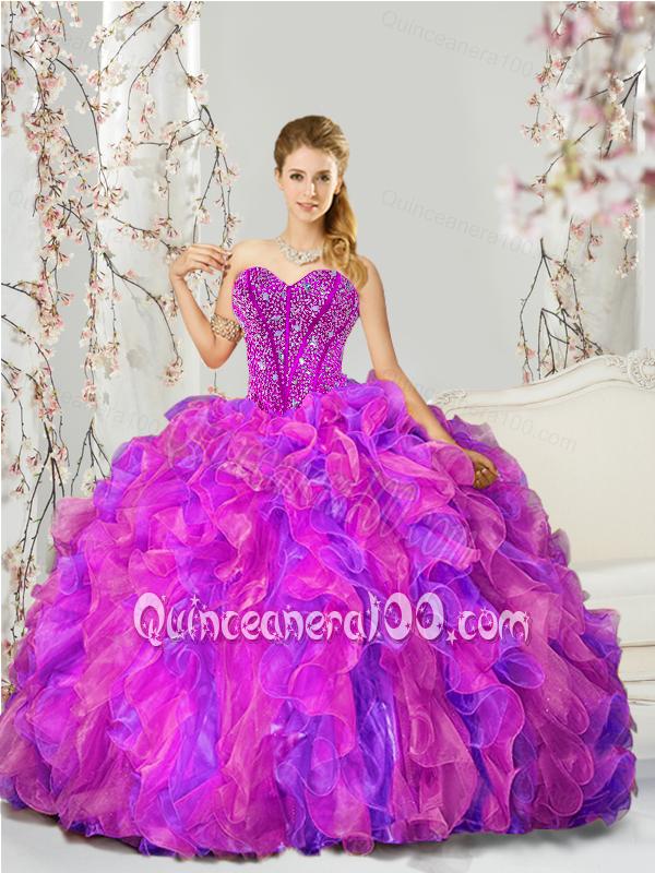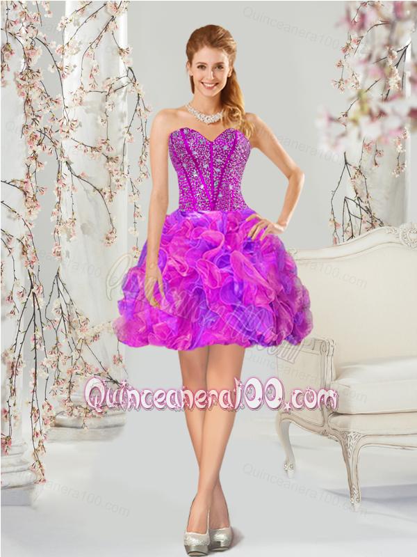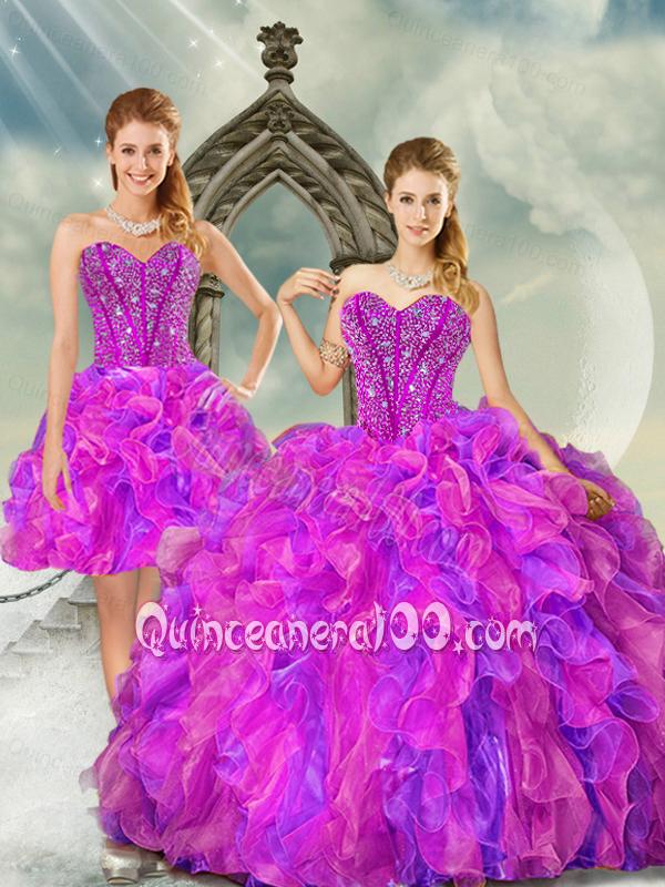 2015 Unique Fuchsia and Lavender Quince Dresses with Beading and Ruffles