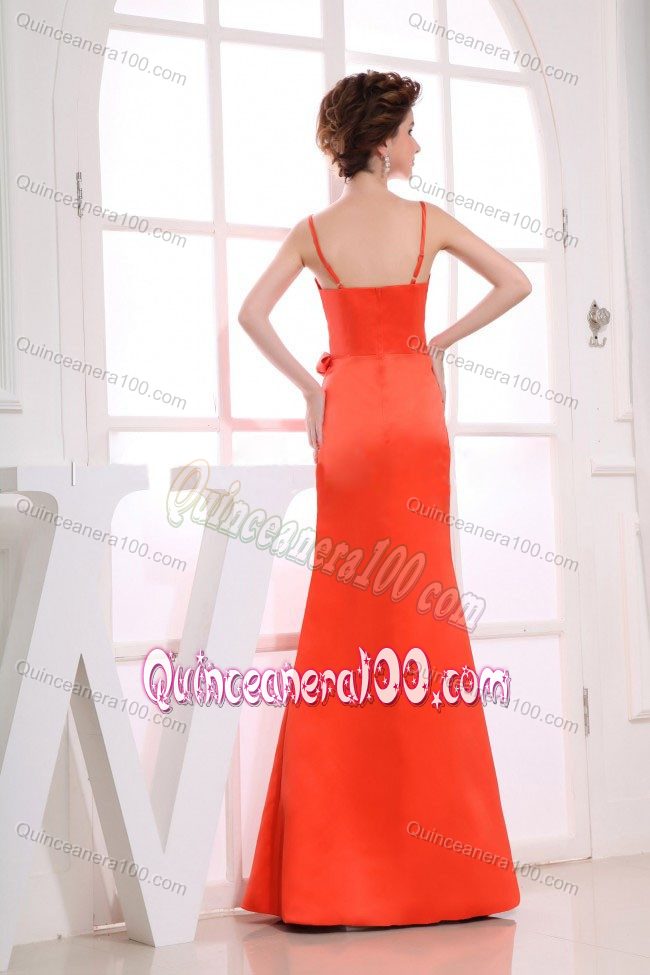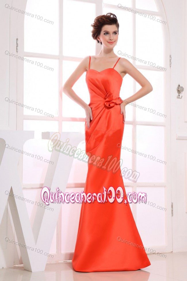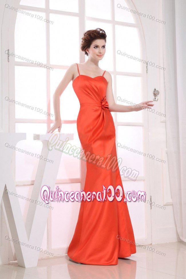 Neckline : StrapsShown Color : Orange RedSilhouette : Column/SheathSleeve Length : sleevelessHemline : floor lengthBack Detail : ZipperFabric : SatinEmbellishment : RuchingOccasion : Sweet 16,Quinceanera,Wedding PartySeason : Spring,Summer,Fall