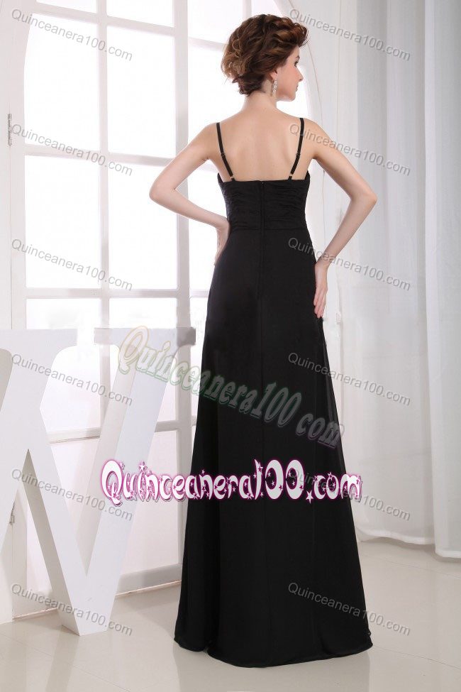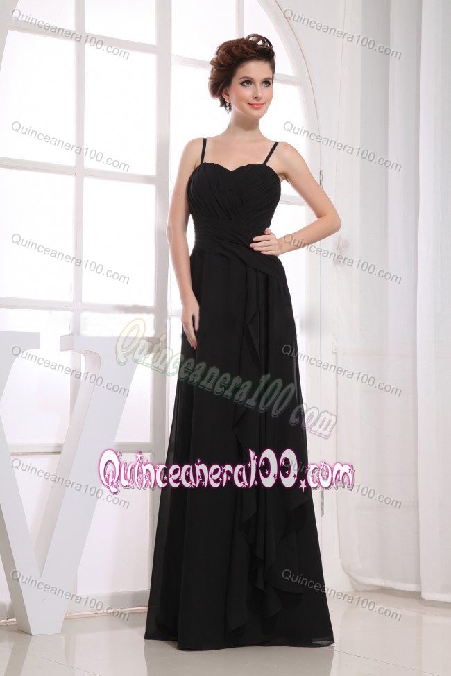 Neckline : StrapsShown Color : BlackSilhouette : EmpireSleeve Length : sleevelessHemline : floor lengthBack Detail : ZipperFabric : ChiffonEmbellishment : RuchingOccasion : Sweet 16,QuinceaneraSeason : Spring,Summer,Fall,Winter