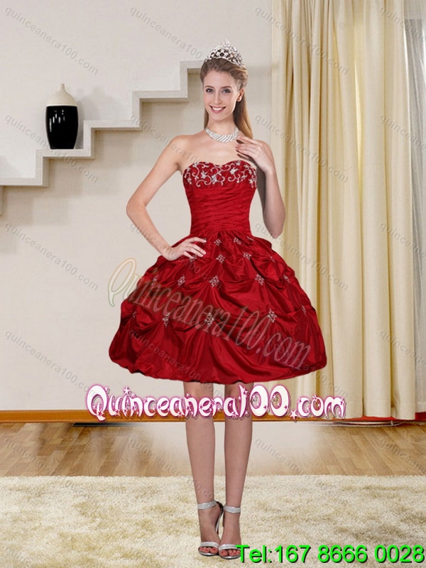 Neckline : StraplessShown Color : Wine RedSilhouette : Ball GownsSleeve Length : sleevelessHemline : mini lengthBack Detail : Lace upFabric : TaffetaEmbellishment : Embroidery,Pick UpsOccasion : Prom,PartySeason : Spring,Summer,Fall,Winter