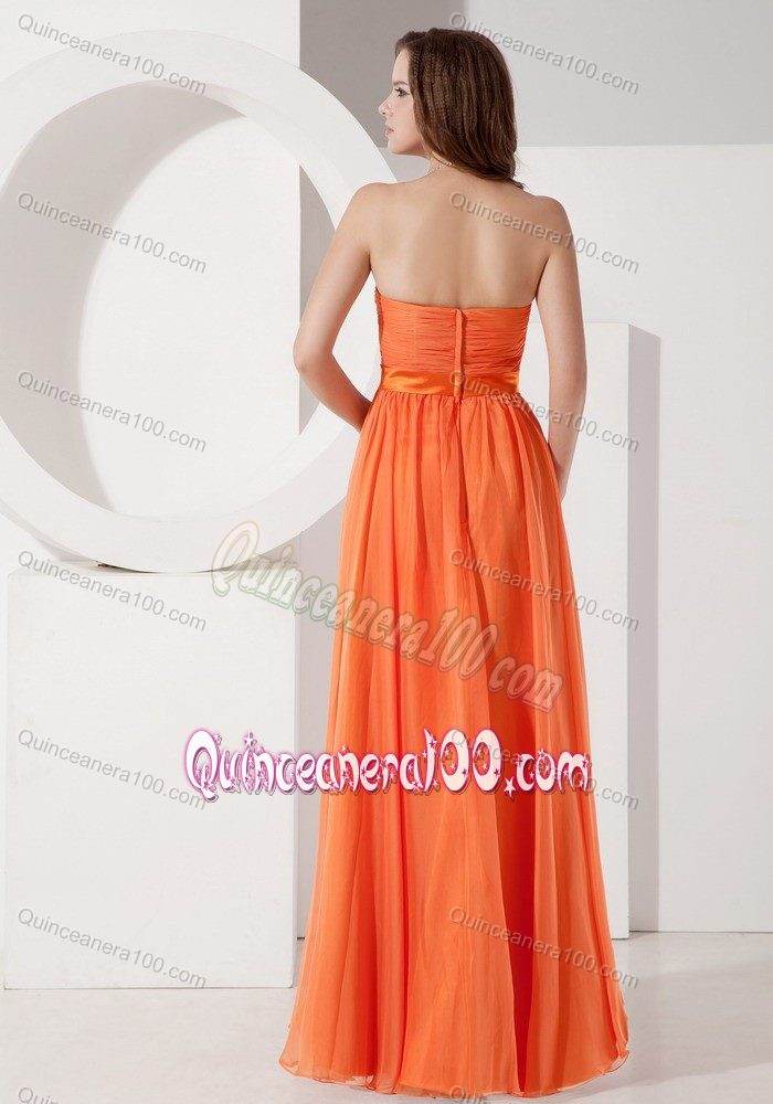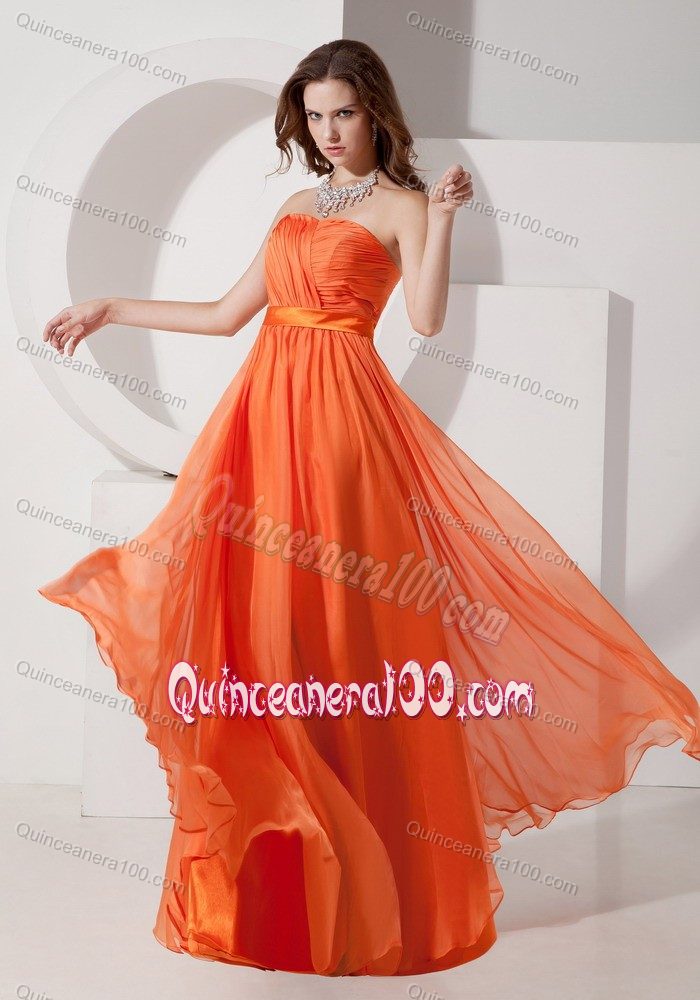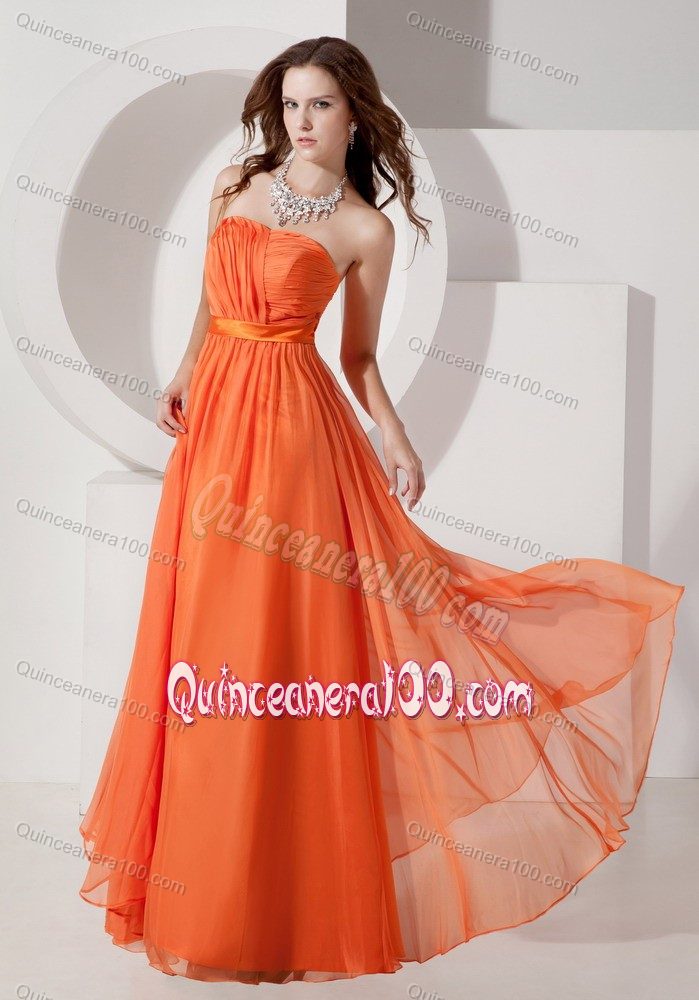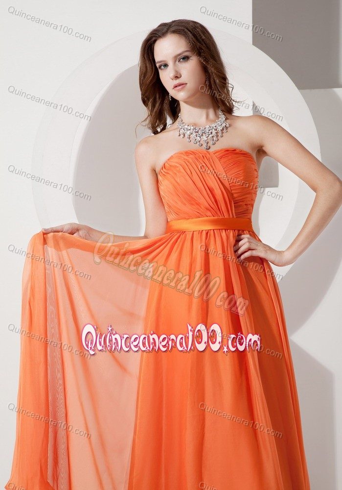 Neckline : StraplessShown Color : OrangeSilhouette : EmpireSleeve Length : sleevelessBack Detail : ZipperEmbellishment : RuchingOccasion : Sweet 16,Quinceanera,Wedding PartySeason : Spring,Summer,Fall,Winter
