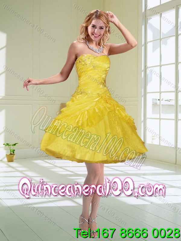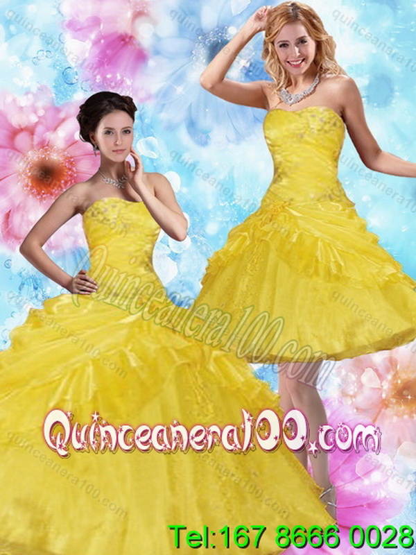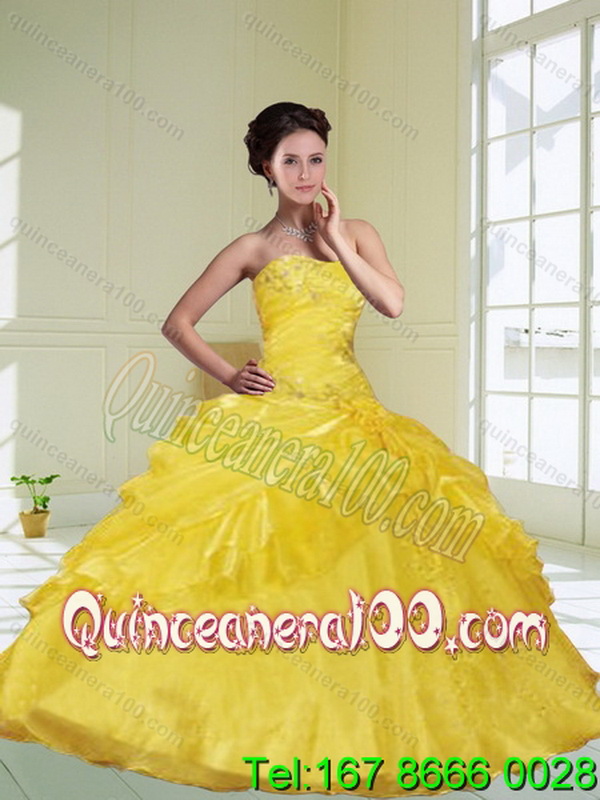 Neckline : StraplessShown Color : YellowSilhouette : Ball GownsSleeve Length : sleevelessHemline : floor lengthBack Detail : Lace upFabric : Satin,OrganzaEmbellishment : BeadingOccasion : Military Ball,Sweet 16,QuinceaneraSeason : Spring,Summer,Fall,Winter