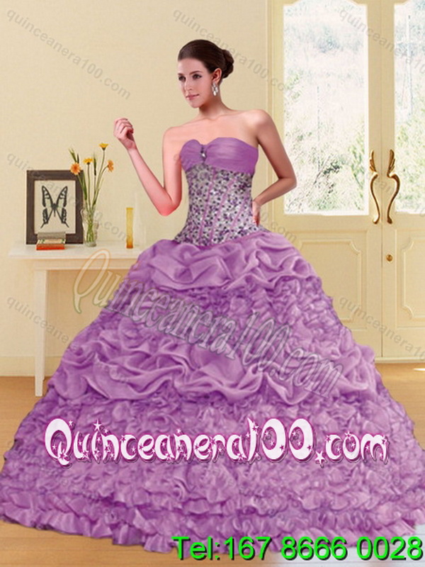 Neckline : SweetheartShown Color : LilacSilhouette : Ball GownsSleeve Length : sleevelessHemline : floor lengthBack Detail : Lace upFabric : OrganzaEmbellishment : Beading,Pick UpsOccasion : Military Ball,Sweet 16,QuinceaneraSeason : Spring,Summer,Fall,Winter