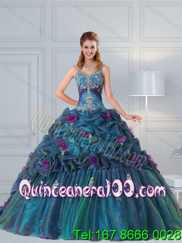 Neckline : Spaghetti strapsShown Color : Multi-colorSilhouette : Ball GownsSleeve Length : sleevelessHemline : floor lengthBack Detail : Lace upFabric : OrganzaEmbellishment : Embroidery,Pick Ups,Hand Made FlowerOccasion : Military Ball,Sweet 16,QuinceaneraSeason : Spring,Summer,Fall,Winter