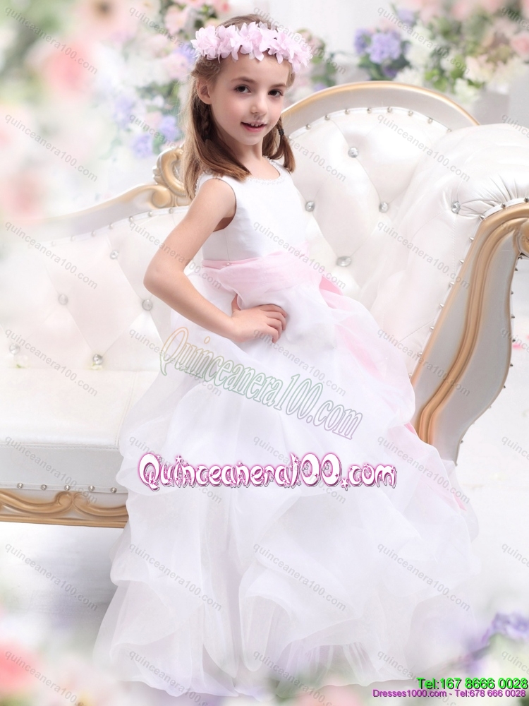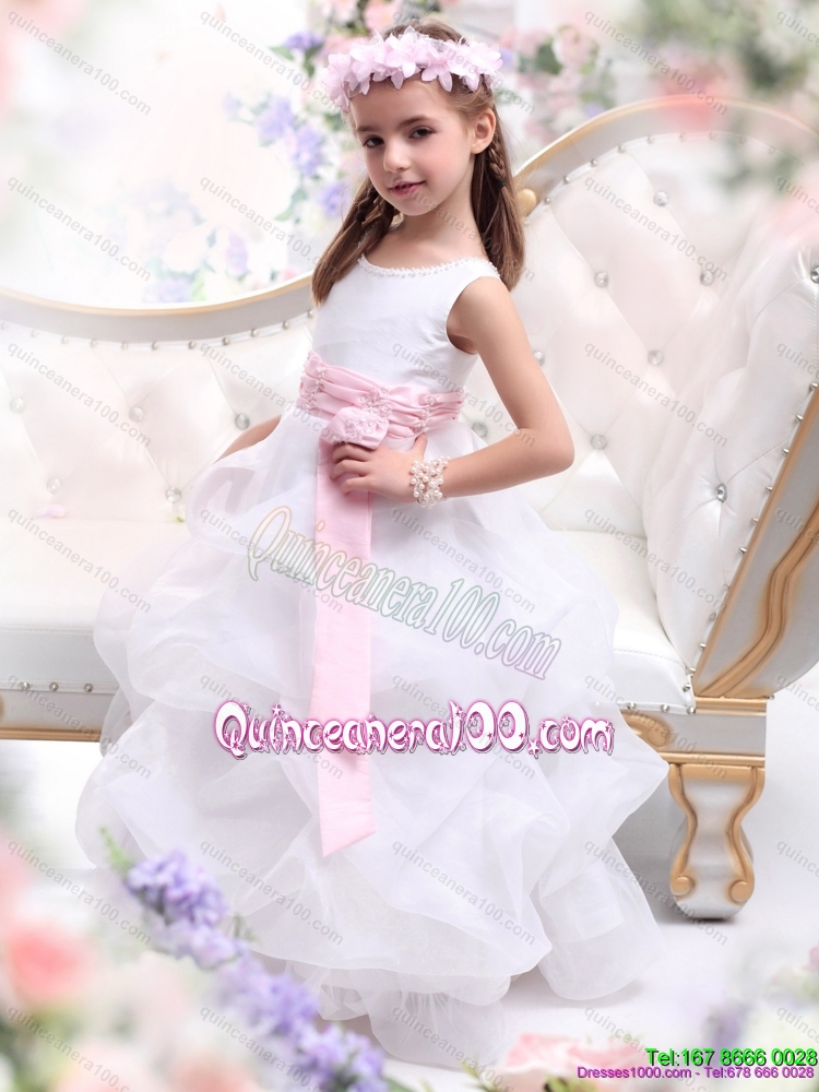 Neckline : ScoopShown Color : WhiteSilhouette : Column/SheathSleeve Length : sleevelessHemline : floor lengthBack Detail : ZipperFabric : OrganzaEmbellishment : Ruffles,Sashes|ribbonsOccasion : Party,Sweet 16,Quinceanera,Wedding PartySeason : Spring,Summer,Fall,Winter