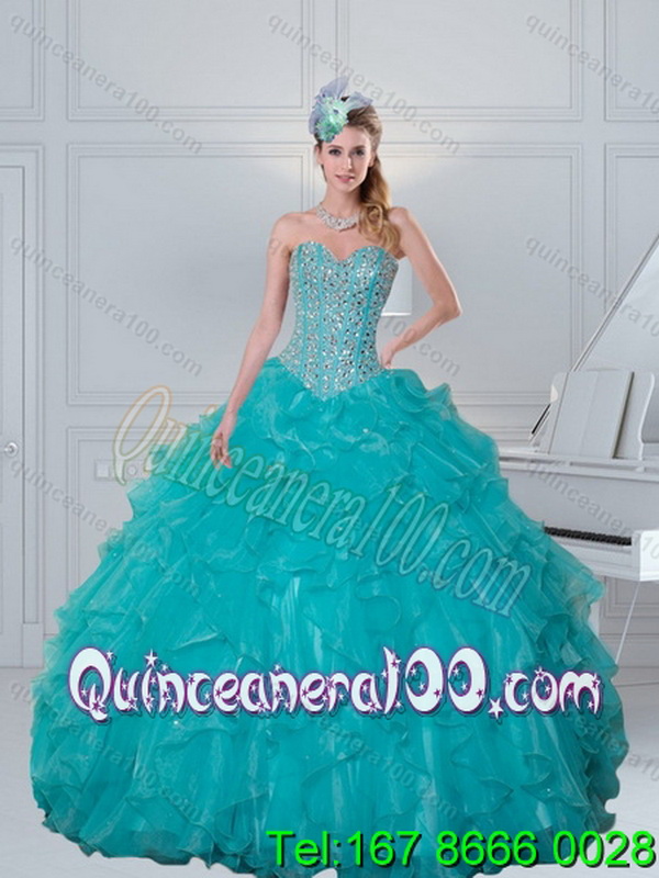 Neckline : SweetheartShown Color : TurquoiseSilhouette : Ball GownsSleeve Length : sleevelessHemline : floor lengthBack Detail : Lace upFabric : OrganzaEmbellishment : BeadingOccasion : Military Ball,Sweet 16,QuinceaneraSeason : Spring,Summer,Fall,Winter