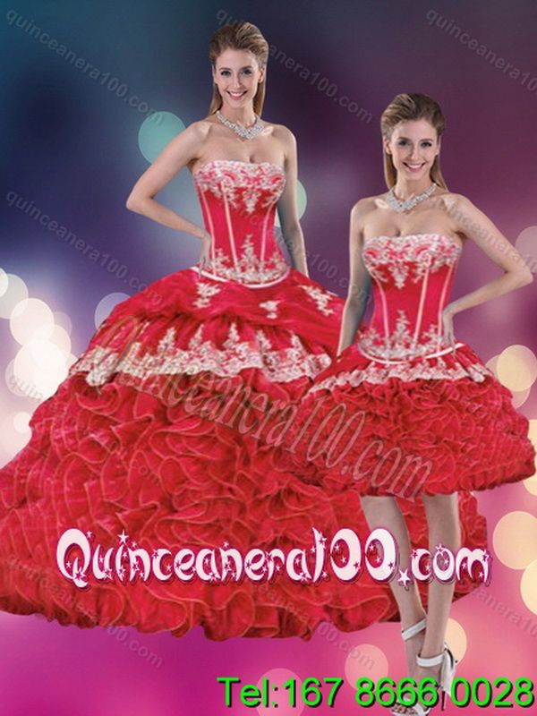 Wholesale 2015 Red Strapless Quinceanera Dresses with Appliques