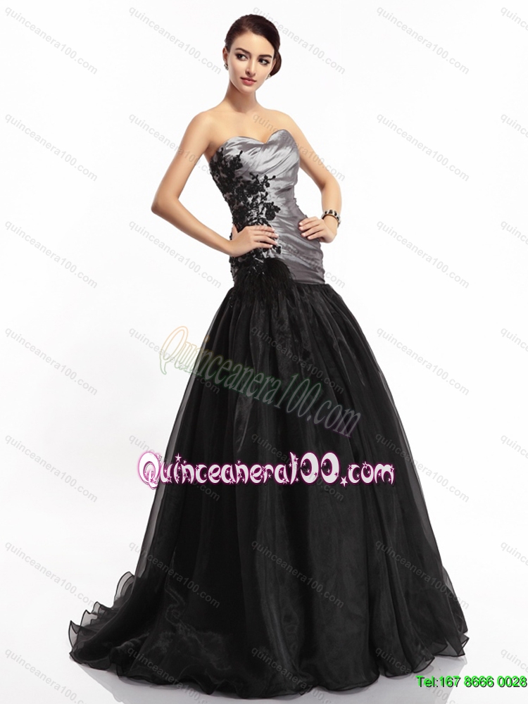 Neckline : SweetheartShown Color : Multi-colorSilhouette : A-lineSleeve Length : sleevelessHemline : with trainBack Detail : Lace upFabric : OrganzaEmbellishment : Beading,AppliquesOccasion : Prom,PartySeason : Spring,Summer,Fall