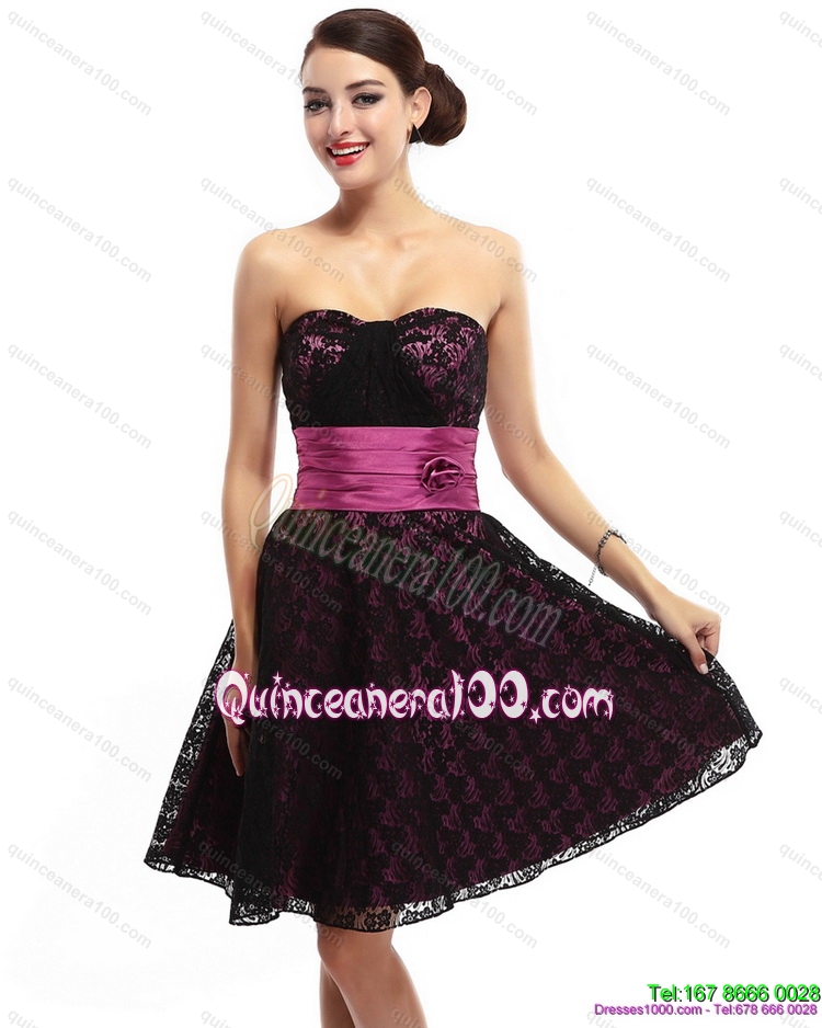 Neckline : SweetheartShown Color : Multi-colorSilhouette : A-lineSleeve Length : sleevelessHemline : mini lengthBack Detail : Lace upFabric : LaceEmbellishment : Lace,Hand Made FlowerOccasion : Prom,PartySeason : Spring,Summer,Fall