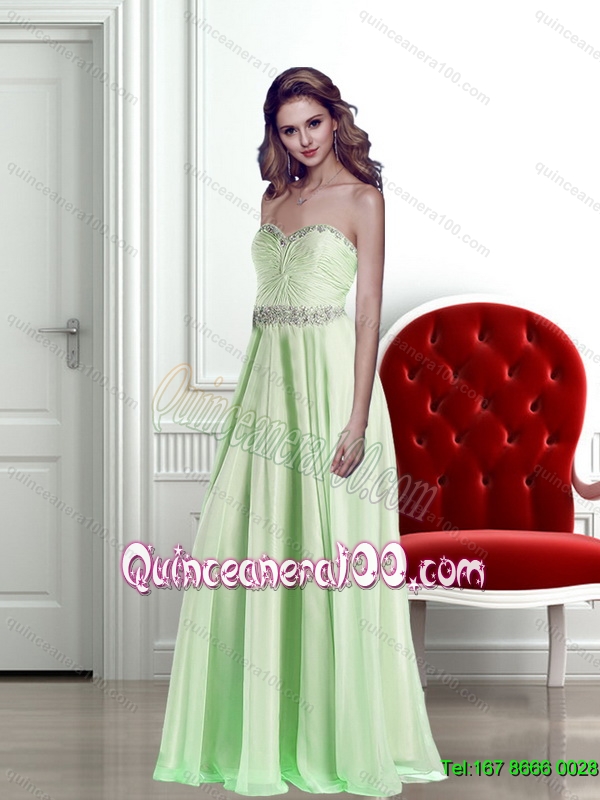 Neckline : SweetheartShown Color : Apple GreenSilhouette : Column/SheathSleeve Length : sleevelessHemline : floor lengthBack Detail : Lace upFabric : ChiffonEmbellishment : Beading,RuchingOccasion : Prom,PartySeason : Spring,Summer,Fall,Winter