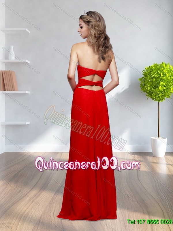 Neckline : SweetheartShown Color : RedSilhouette : Column/SheathSleeve Length : sleevelessHemline : floor lengthBack Detail : BacklessFabric : ChiffonEmbellishment : RuchingOccasion : Prom,PartySeason : Spring,Summer,Fall,Winter