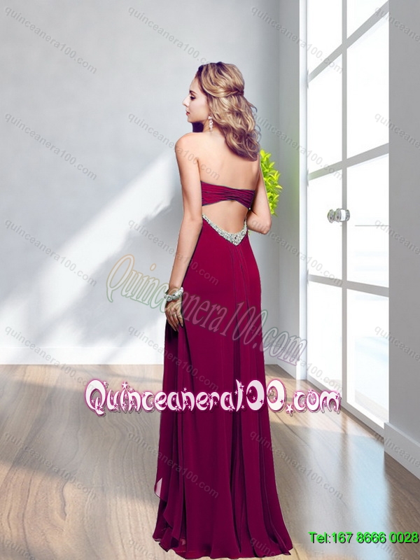 Neckline : StraplessShown Color : Wine RedSilhouette : Column/SheathSleeve Length : sleevelessHemline : floor lengthBack Detail : BacklessFabric : ChiffonEmbellishment : BeadingOccasion : Prom,PartySeason : Spring,Summer,Fall,Winter