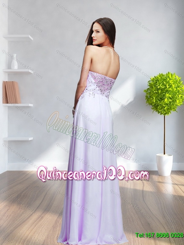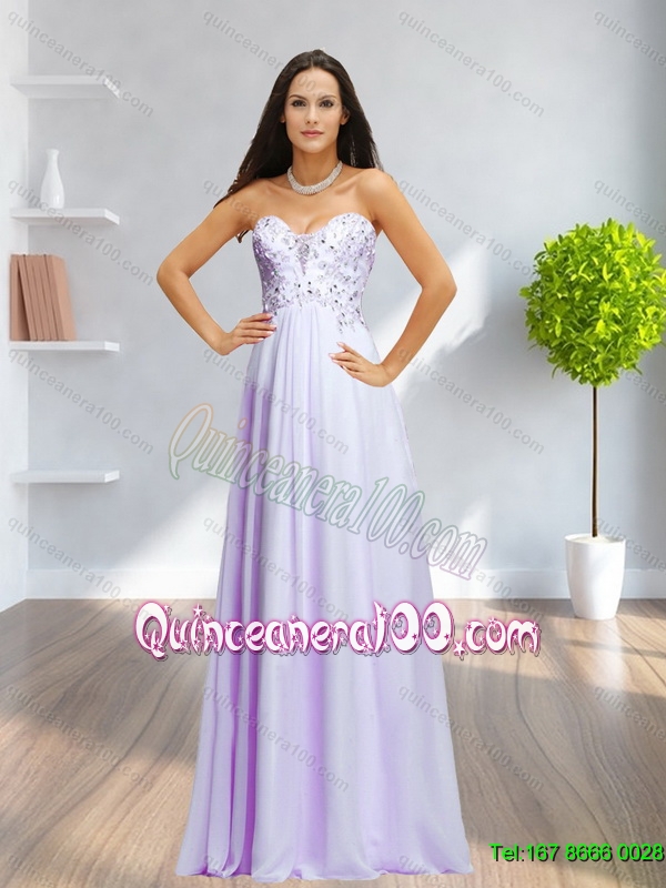 Neckline : SweetheartShown Color : LavenderSilhouette : EmpireSleeve Length : sleevelessHemline : floor lengthBack Detail : Side zipperFabric : ChiffonEmbellishment : Beading,RuchingOccasion : Prom,PartySeason : Spring,Summer,Fall,Winter