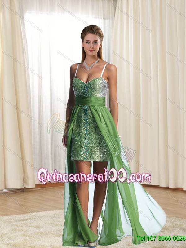 Neckline : Spaghetti strapsShown Color : Olive GreenSilhouette : EmpireSleeve Length : sleevelessHemline : high lowBack Detail : ZipperFabric : OrganzaEmbellishment : BeadingOccasion : Prom,PartySeason : Spring,Summer,Fall,Winter