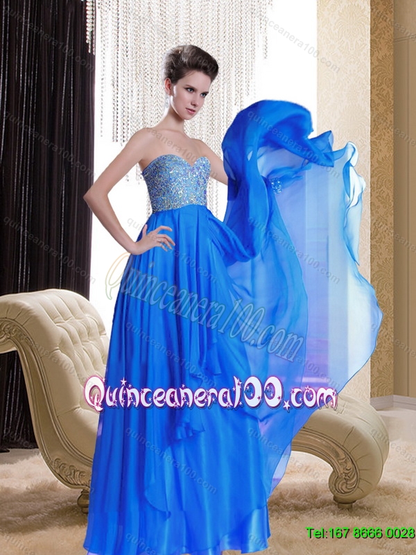 Neckline : SweetheartShown Color : Royal BlueSilhouette : EmpireSleeve Length : sleevelessHemline : floor lengthBack Detail : ZipperFabric : ChiffonEmbellishment : BeadingOccasion : Prom,Party,Military BallSeason : Spring,Summer,Fall,Winter