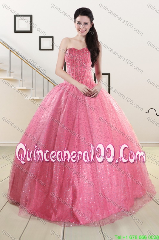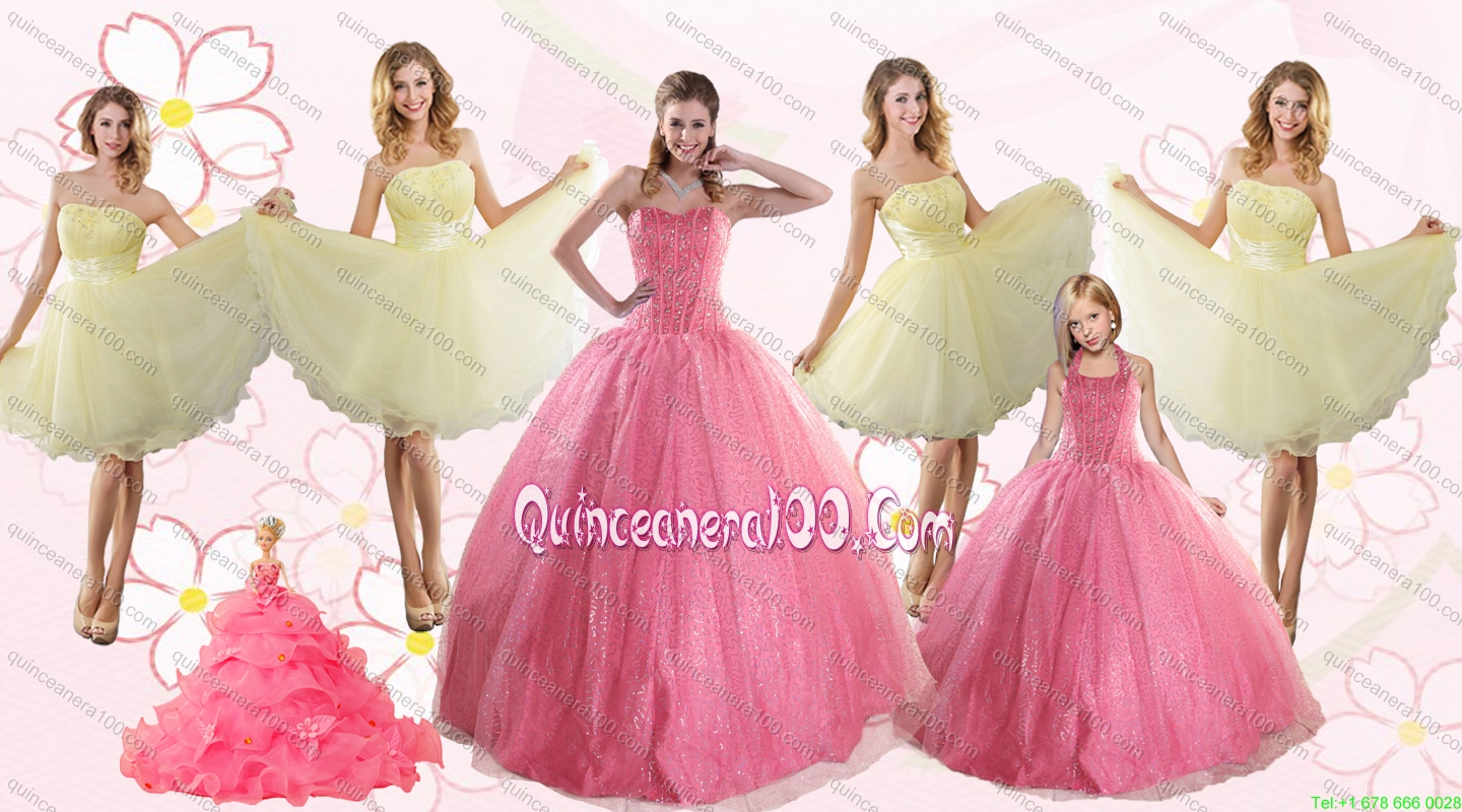 Rose Pink Beading Ball Gown Quinceanera Dress and Strapless Knee Length Dama Dresses and Halter Top Little Girl Dress