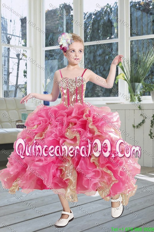 Beading Multi Color Ball Gown Quinceanera Dress and Ruching Knee Length Dama Dresses and Ruffles Spaghetti Straps Little Girl Dress