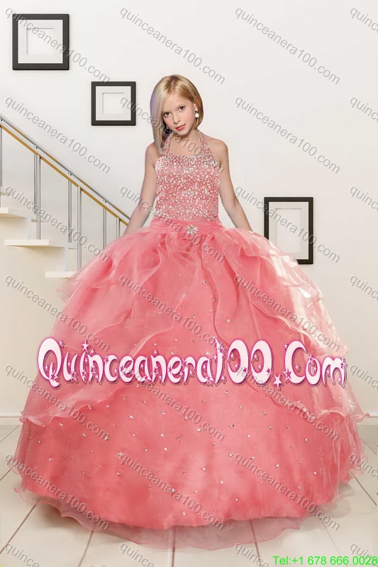 Discount Sweetheart Beading and Ruffles Quinceanera Dress and Strapless Hand Made Flower Dama Dresses and Halter Top Beading Little Girl Dress