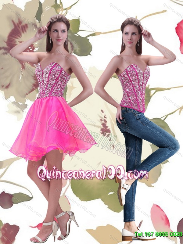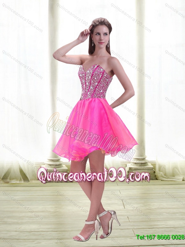 Neckline : SweetheartShown Color : Hot PinkSilhouette : ShortSleeve Length : sleevelessHemline : mini lengthBack Detail : Lace upFabric : OrganzaEmbellishment : BeadingOccasion : Prom,PartySeason : Spring,Summer,Fall