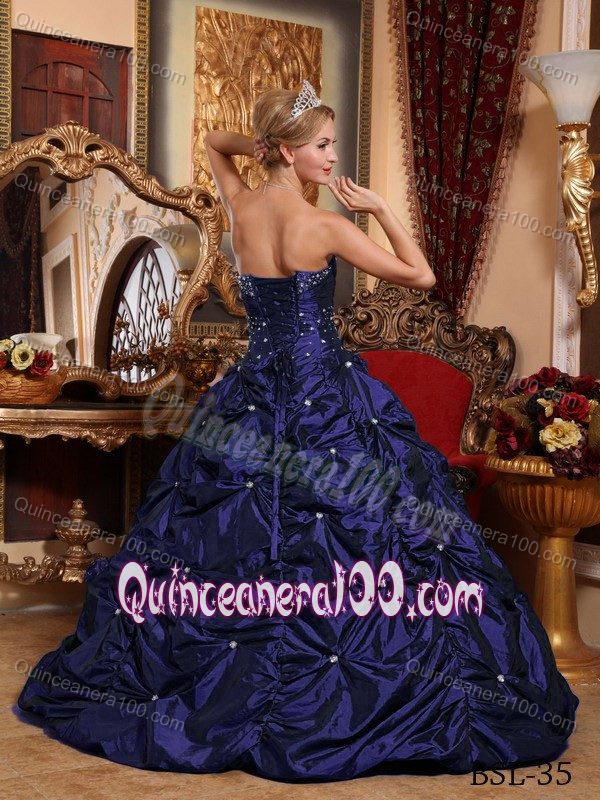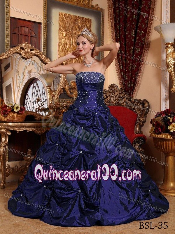 A-line Strapless Taffeta Beaded Pick-ups Accent Dress for Quince