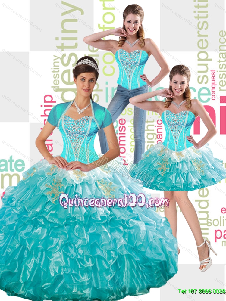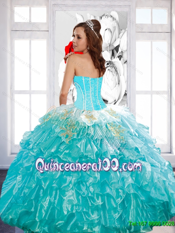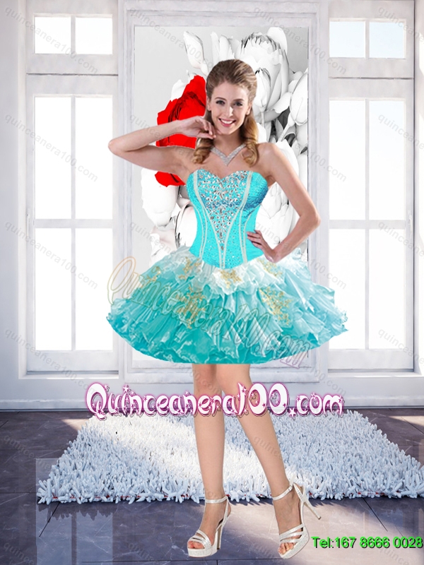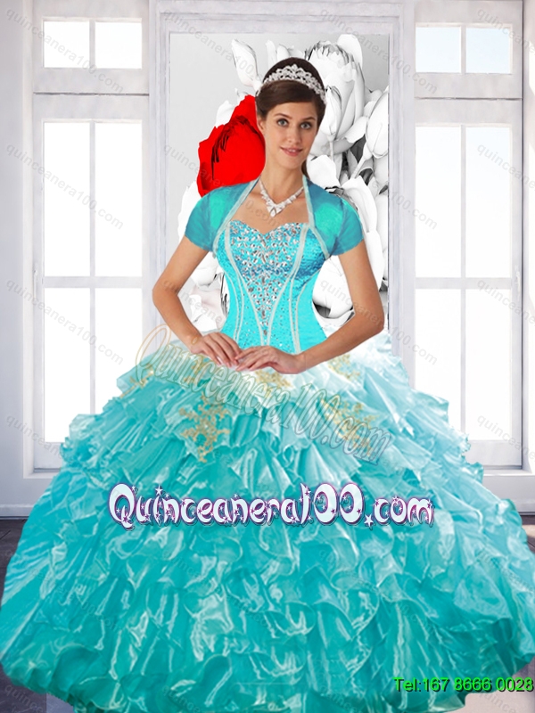 Neckline : SweetheartShown Color : Aqua BlueSilhouette : Ball GownsSleeve Length : sleevelessHemline : floor lengthBack Detail : Lace upFabric : OrganzaEmbellishment : Beading,Appliques,Ruffled LayersOccasion : Military Ball,Sweet 16,QuinceaneraSeason : Spring,Summer,Fall,Winter