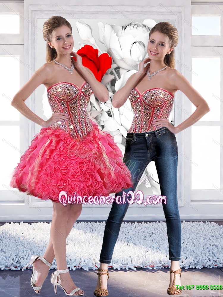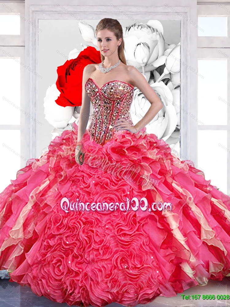 Neckline : SweetheartShown Color : Hot PinkSleeve Length : sleevelessHemline : floor lengthBack Detail : Lace upFabric : OrganzaEmbellishment : Beading,Ruffles,Hand Made FlowerOccasion : Military Ball,Sweet 16,QuinceaneraSeason : Spring,Summer,Fall,Winter