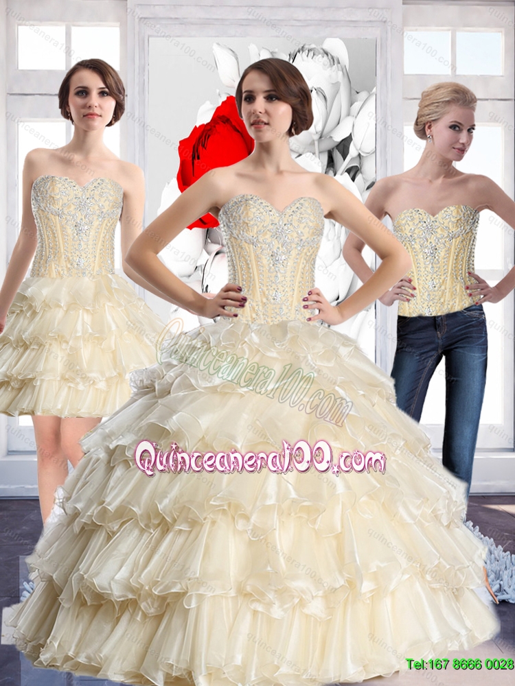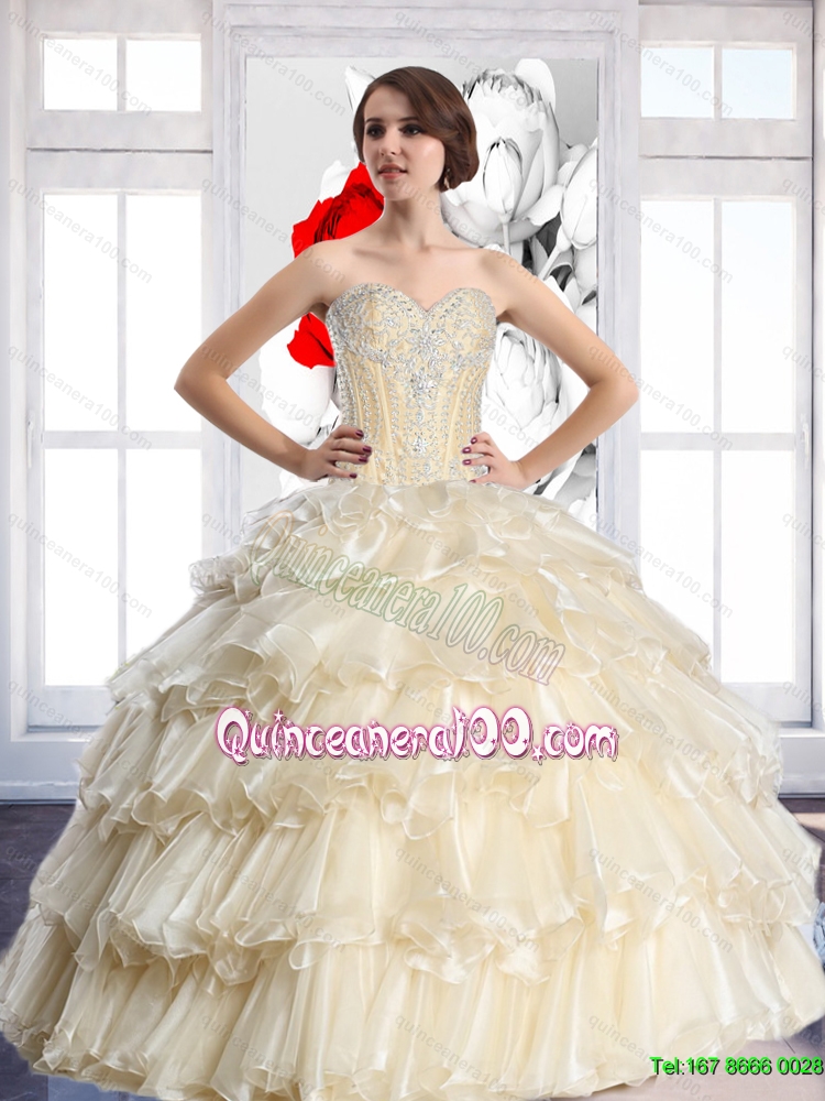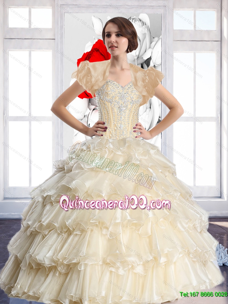Luxurious 2015 Sweetheart Quinceanera Dresses with Beading and Ruffled Layers