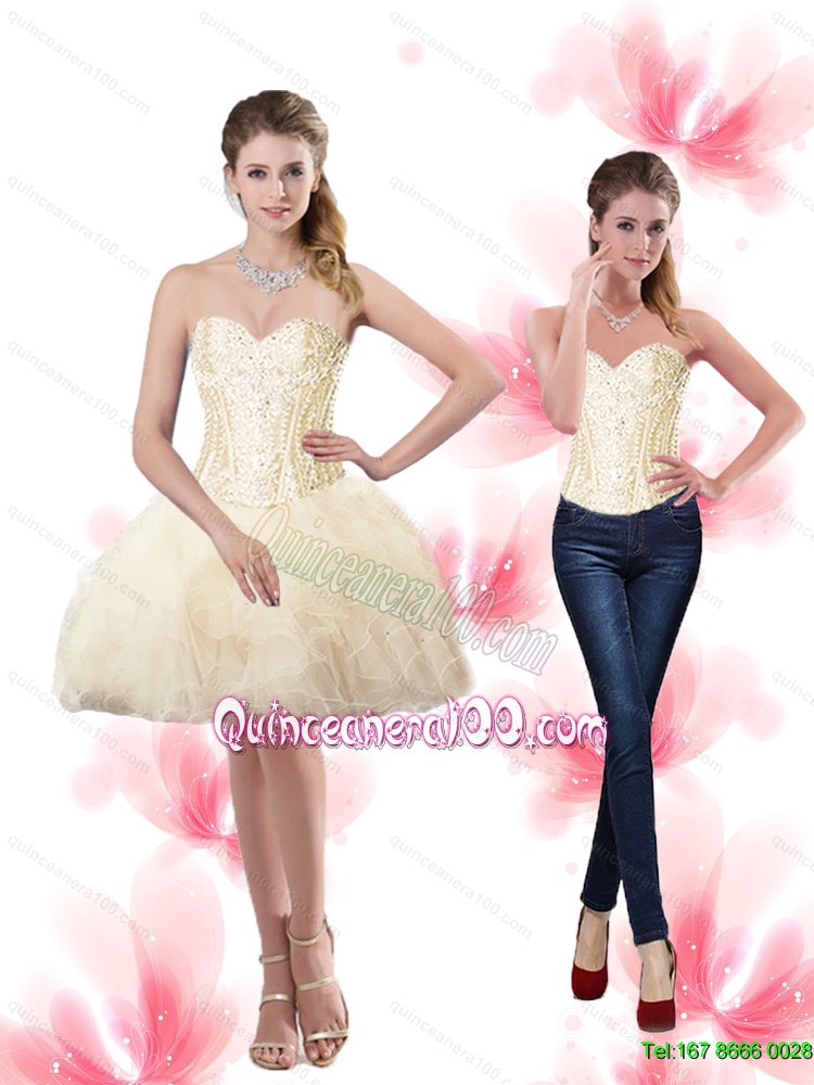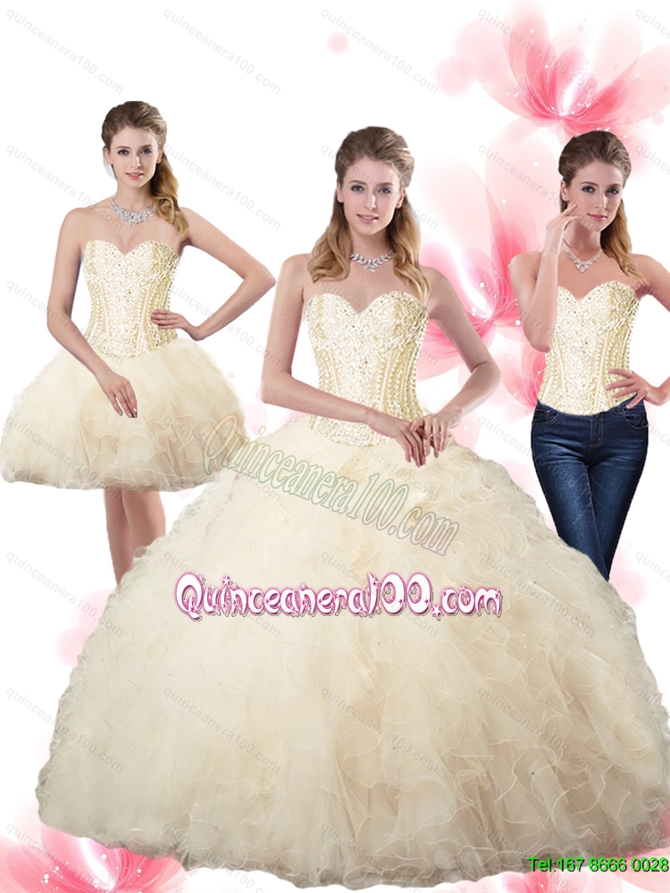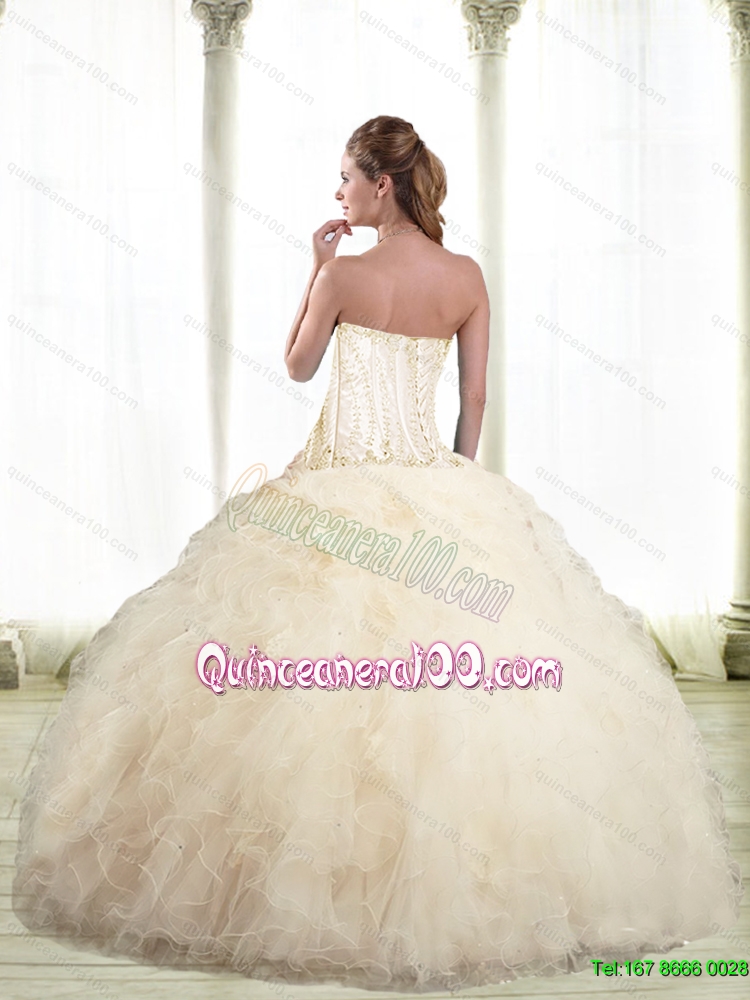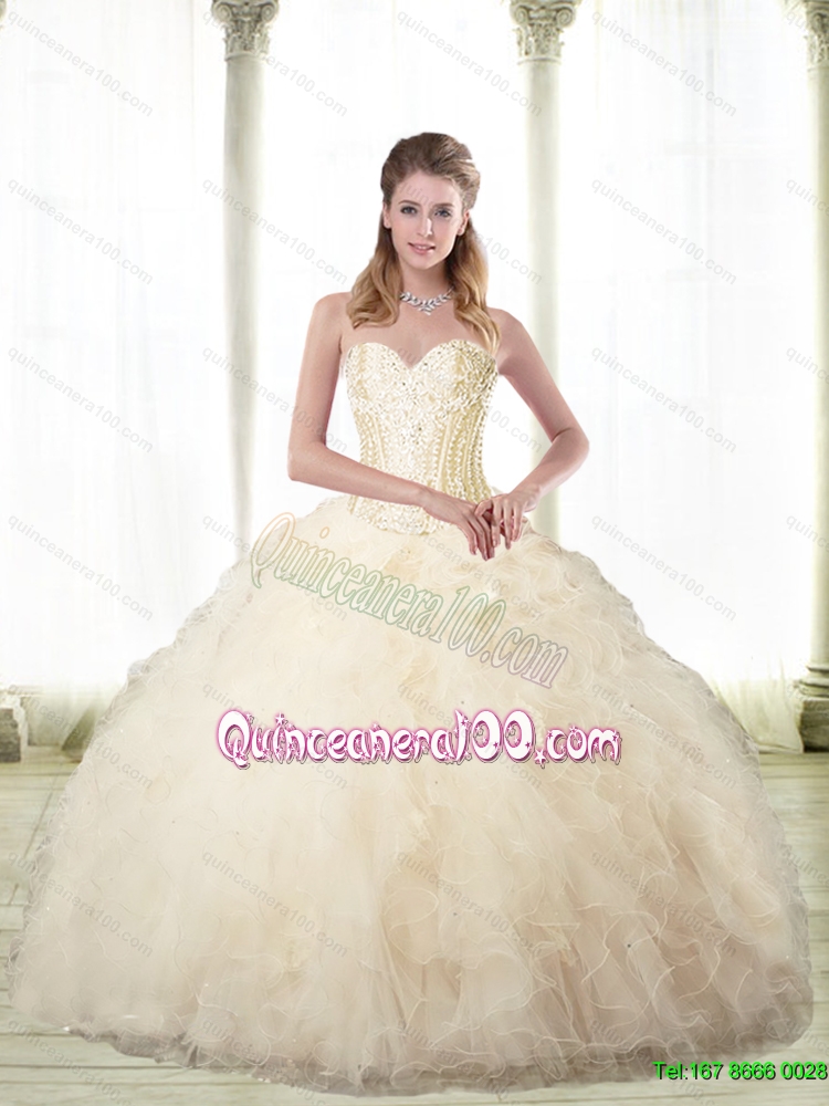 Neckline : SweetheartShown Color : ChampagneSilhouette : Ball GownsSleeve Length : sleevelessHemline : floor lengthBack Detail : Lace upFabric : OrganzaEmbellishment : Beading,RufflesOccasion : Military Ball,Sweet 16,QuinceaneraSeason : Spring,Summer,Fall,Winter