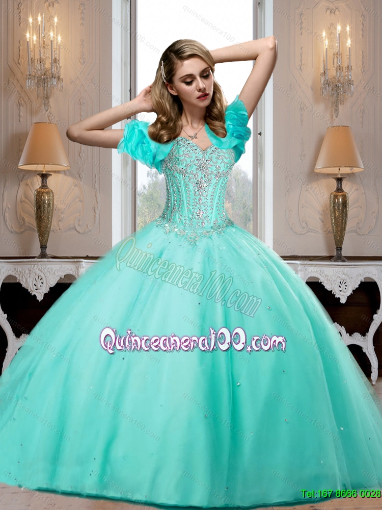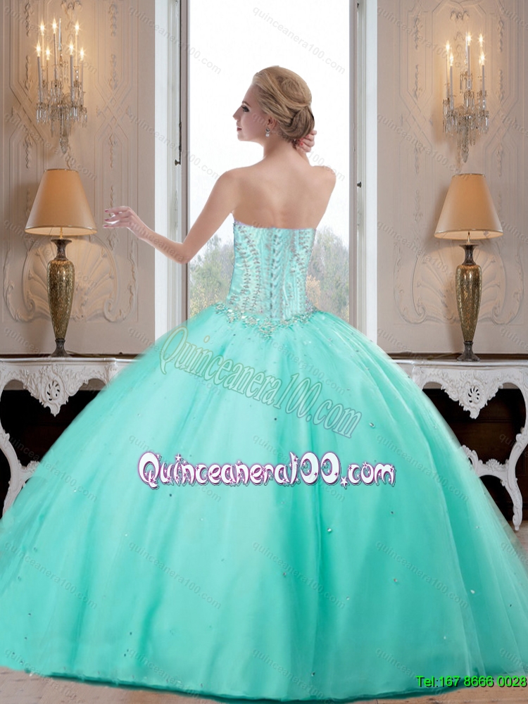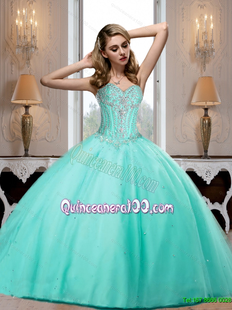 Neckline : SweetheartShown Color : Aqua BlueSilhouette : Ball GownsSleeve Length : sleevelessHemline : floor lengthBack Detail : Lace upFabric : TulleEmbellishment : BeadingOccasion : Military Ball,Sweet 16,QuinceaneraSeason : Spring,Summer,Fall,Winter