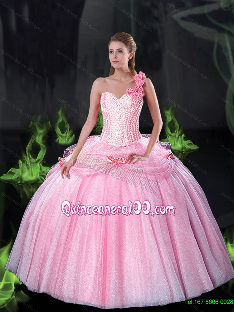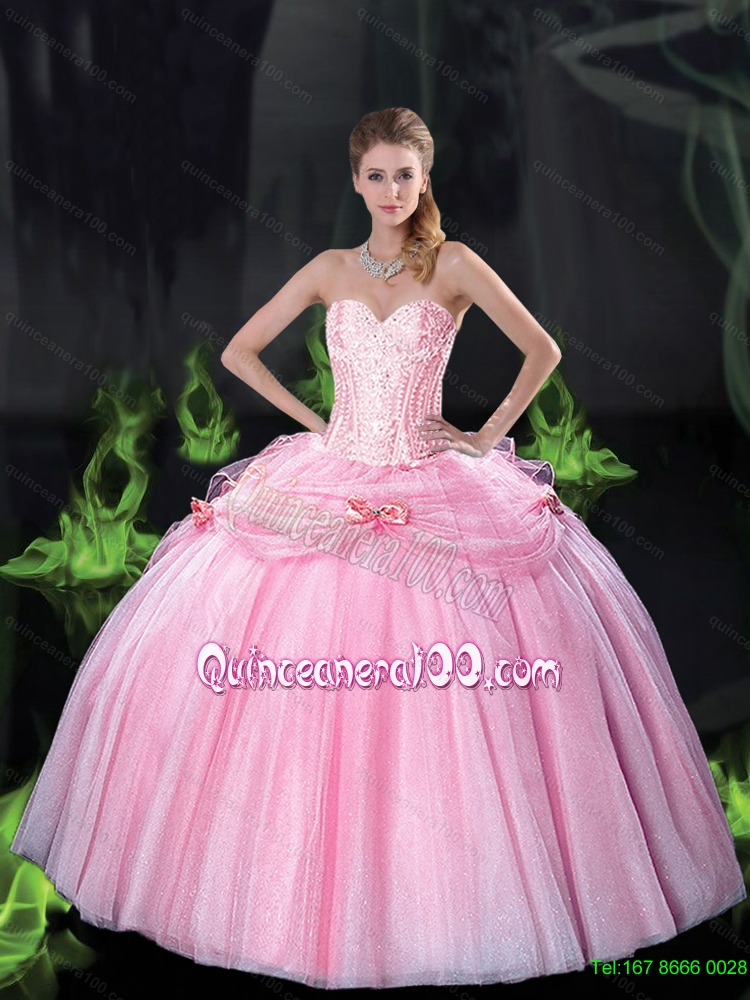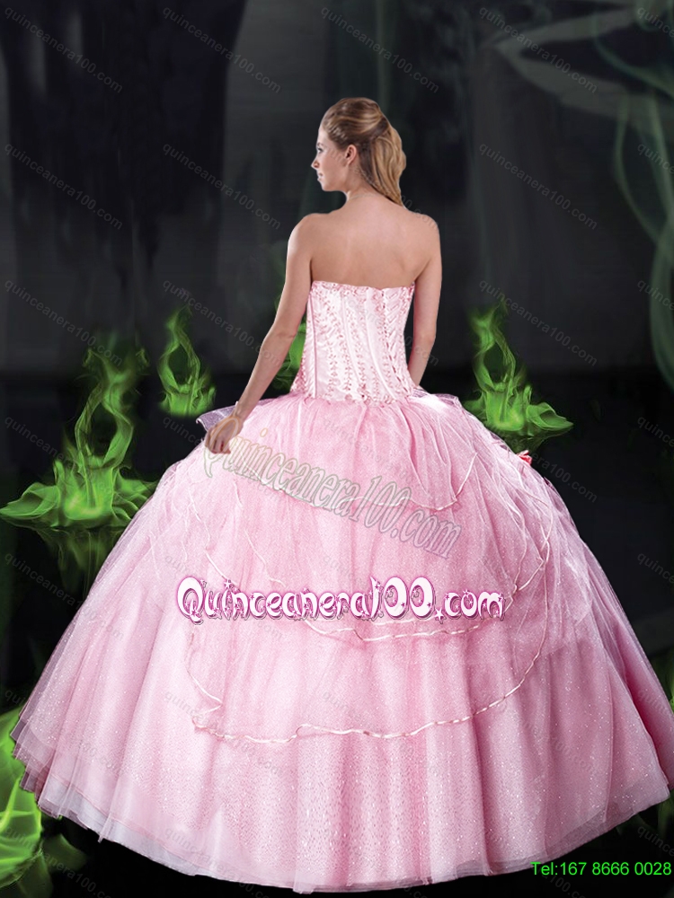 Neckline : SweetheartShown Color : PinkSilhouette : Ball GownsSleeve Length : sleevelessHemline : floor lengthBack Detail : Lace upFabric : TulleEmbellishment : Beading,BowknotOccasion : Military Ball,Sweet 16,QuinceaneraSeason : Spring,Summer,Fall,Winter
