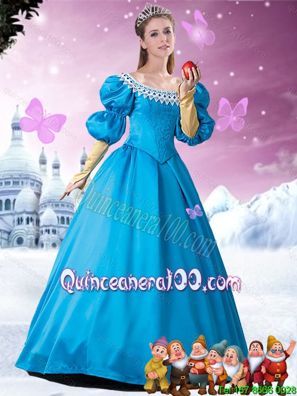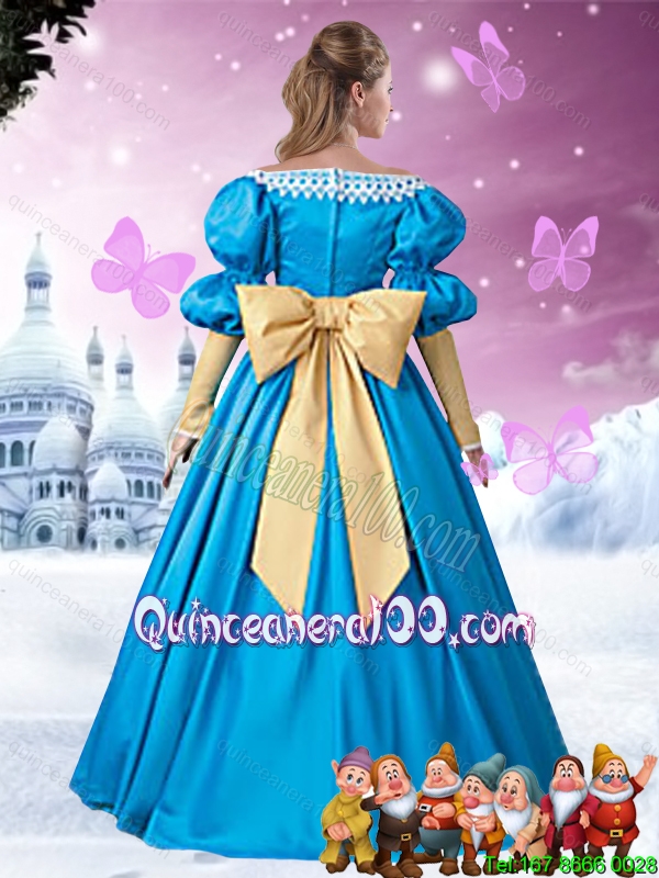 Neckline : ScoopShown Color : BlueSleeve Length : long sleevesHemline : floor lengthBack Detail : ZipperFabric : TaffetaEmbellishment : BowknotOccasion : Military Ball,Sweet 16,QuinceaneraSeason : Spring,Summer,Fall,Winter