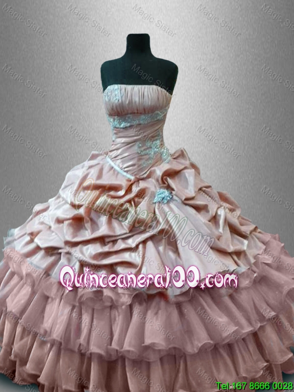 Neckline : StraplessShown Color : BrownSilhouette : Ball GownsSleeve Length : sleevelessHemline : floor lengthBack Detail : Lace upFabric : Organza,TaffetaEmbellishment : Beading,Ruffled Layers,Pick UpsOccasion : Military Ball,Sweet 16,QuinceaneraSeason : Spring,Summer,Fall,Winter