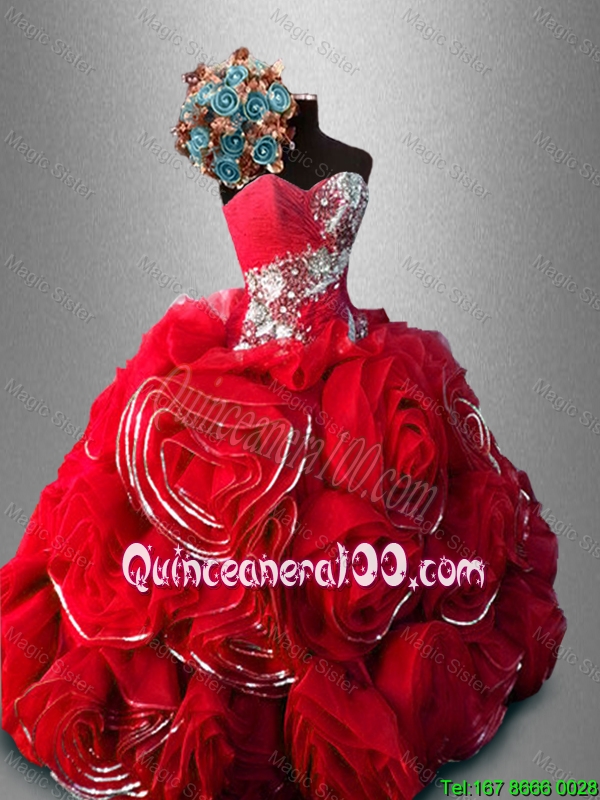 Neckline : SweetheartShown Color : RedSilhouette : Ball GownsSleeve Length : sleevelessHemline : floor lengthBack Detail : Lace upFabric : OrganzaEmbellishment : Beading,Hand Made FlowerOccasion : Military Ball,Sweet 16,QuinceaneraSeason : Spring,Summer,Fall,Winter