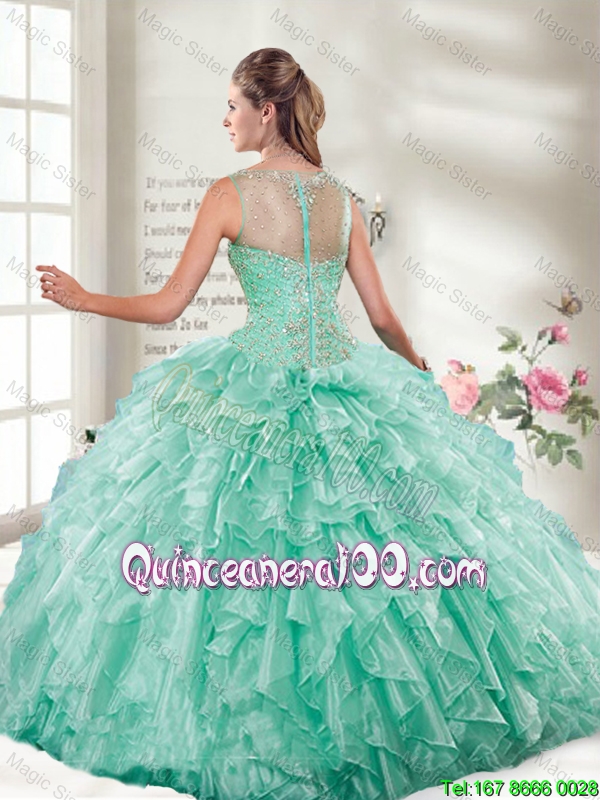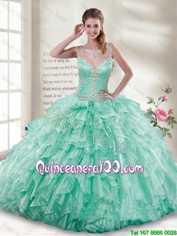 Neckline : ScoopShown Color : Apple GreenSilhouette : Ball GownsSleeve Length : sleevelessHemline : floor lengthBack Detail : ZipperFabric : OrganzaEmbellishment : Beading,RufflesOccasion : Military Ball,Sweet 16,QuinceaneraSeason : Spring,Summer,Fall,Winter