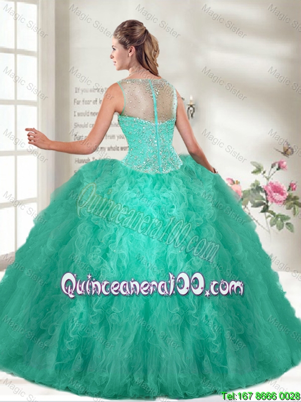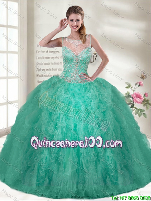 Neckline : ScoopShown Color : TurquoiseSilhouette : Ball GownsSleeve Length : sleevelessHemline : floor lengthBack Detail : ZipperFabric : OrganzaEmbellishment : Beading,RufflesOccasion : Military Ball,Sweet 16,QuinceaneraSeason : Spring,Summer,Fall,Winter