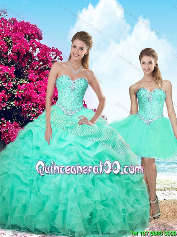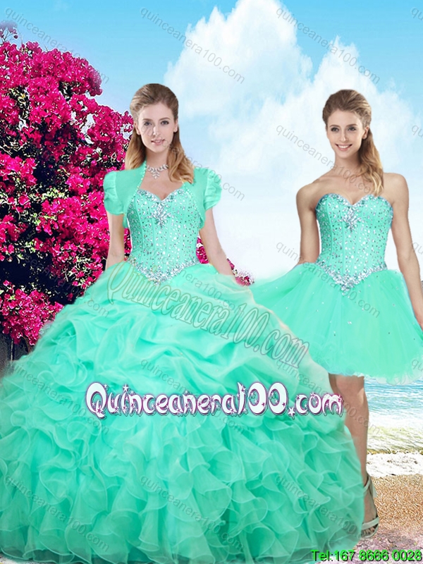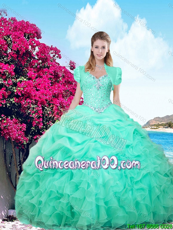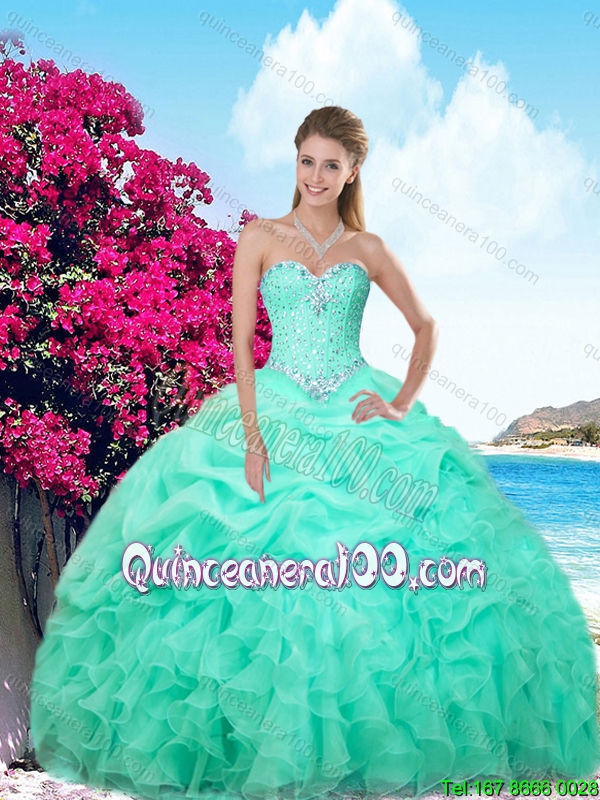 Neckline : SweetheartShown Color : Apple GreenSilhouette : Ball GownsSleeve Length : sleevelessHemline : floor lengthBack Detail : Lace upFabric : OrganzaEmbellishment : Beading,Ruffles,Pick UpsOccasion : Military Ball,Sweet 16,QuinceaneraSeason : Spring,Summer,Fall,Winter