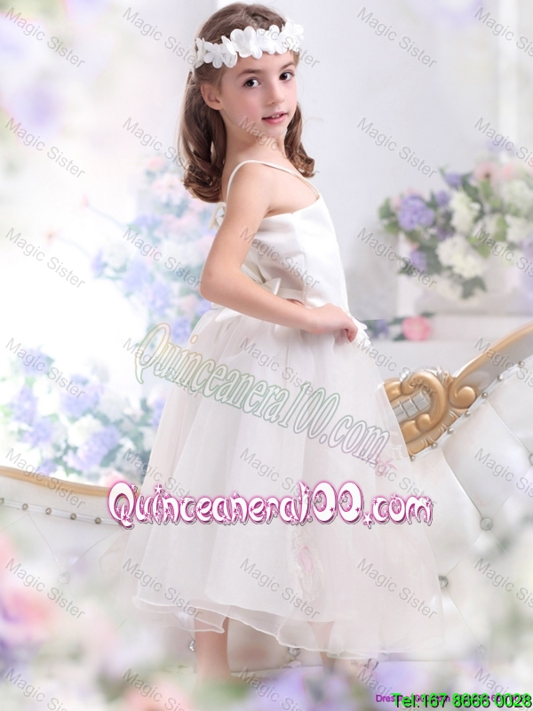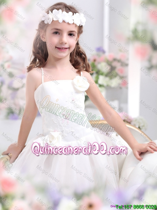Neckline : Spaghetti strapsShown Color : WhiteSilhouette : Column/sheathSleeve Length : sleevelessHemline : tea lengthBack Detail : ZipperFabric : OrganzaEmbellishment : Appliques,Hand Made FlowerOccasion : Wedding PartySeason : Spring,Summer,Fall,Winter