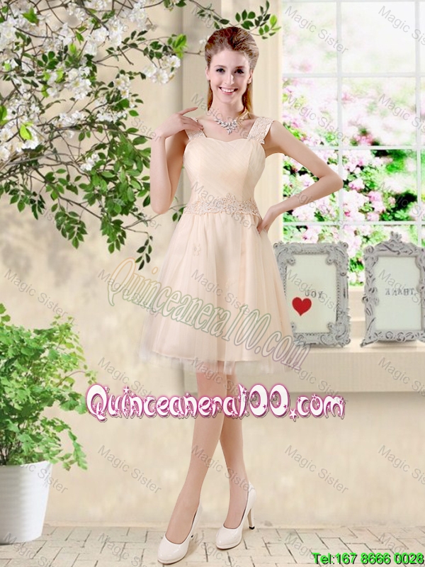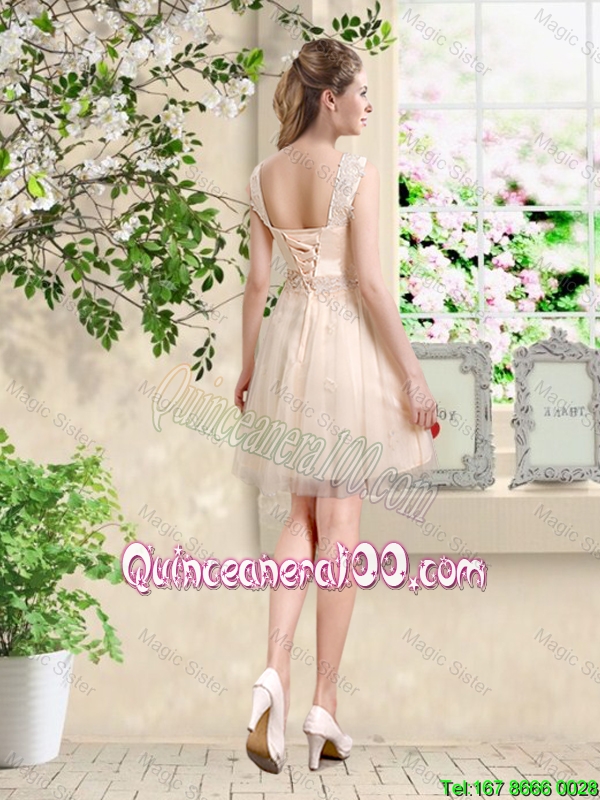Neckline : StrapsShown Color : ChampagneSilhouette : ShortSleeve Length : sleevelessHemline : knee lengthBack Detail : Lace upFabric : TulleEmbellishment : BeltOccasion : Prom,Party,Wedding PartySeason : Spring,Summer,Fall
