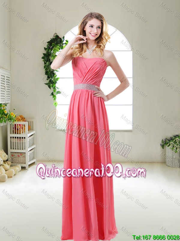 Neckline : AsymmetricShown Color : Watermelon RedSilhouette : EmpireSleeve Length : sleevelessHemline : floor lengthBack Detail : ZipperFabric : ChiffonEmbellishment : RuchingOccasion : Prom,Party,Quinceanera,Wedding PartySeason : Spring,Summer,Fall,Winter